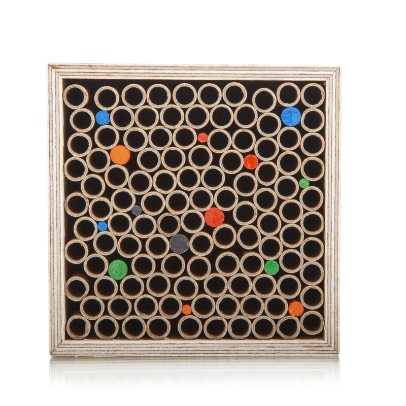 Therefore, it is appropriate to break the regular structure of the nest a bit. Colored targets are a good example of how a bee remembers how far, or to the right, left or up or down of the target is its nest. If we facilitate the smooth flow of bees to their houses, we will also speed up the pollination process.